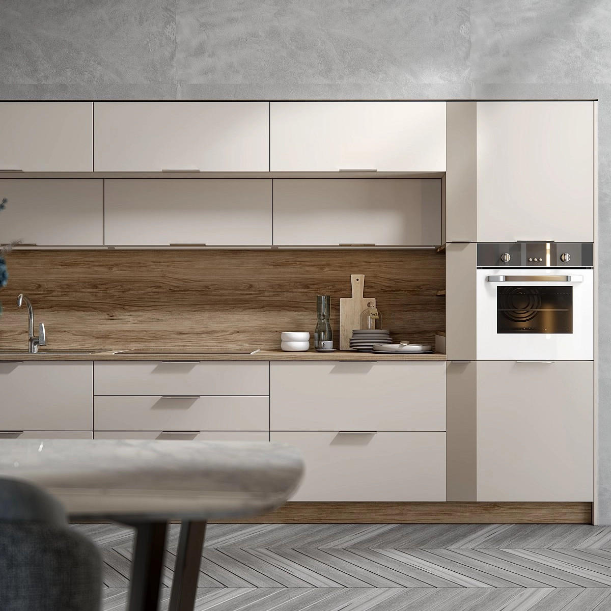 Строгая геометрия и функциональные детали для современных интерьеров. Выразительные сочетания фактур создают брутальный акцент в пространстве. Фасады доступны в трендовом матовом и эффектном глянцевом исполнении.